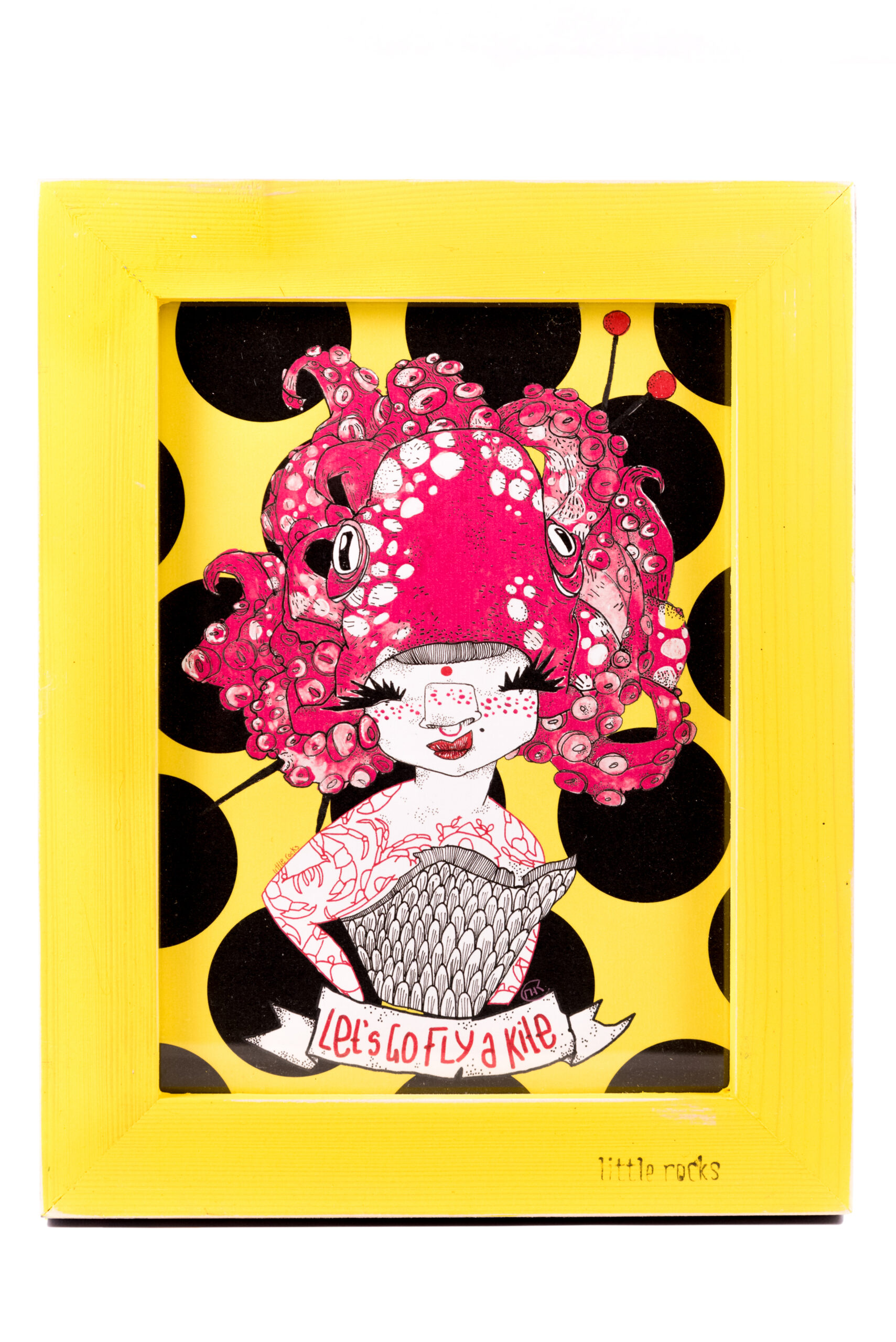Octopus lady illustration comes with wooden upcycled frame and plexi glass